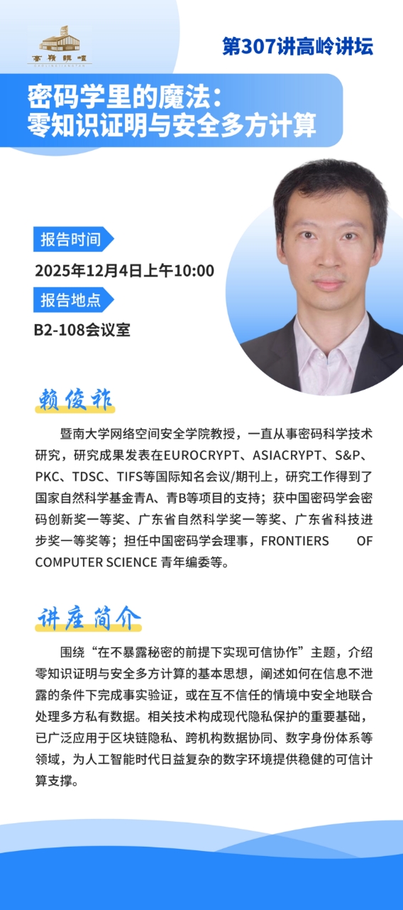 高岭讲坛第三百零七讲预告